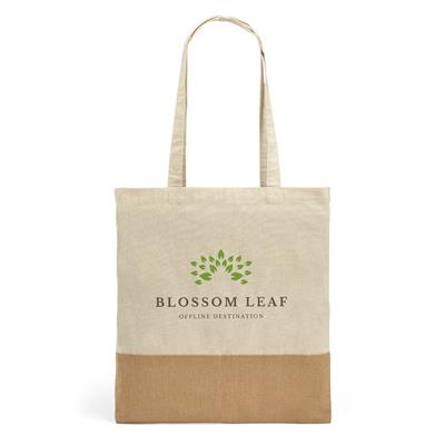 Sacola de Algodão com Juta Mercat AZ92882. Sacola. 100% algodão: 160 g/m². Detalhe em juta. Alças de 65 cm. 375 x 415 mm