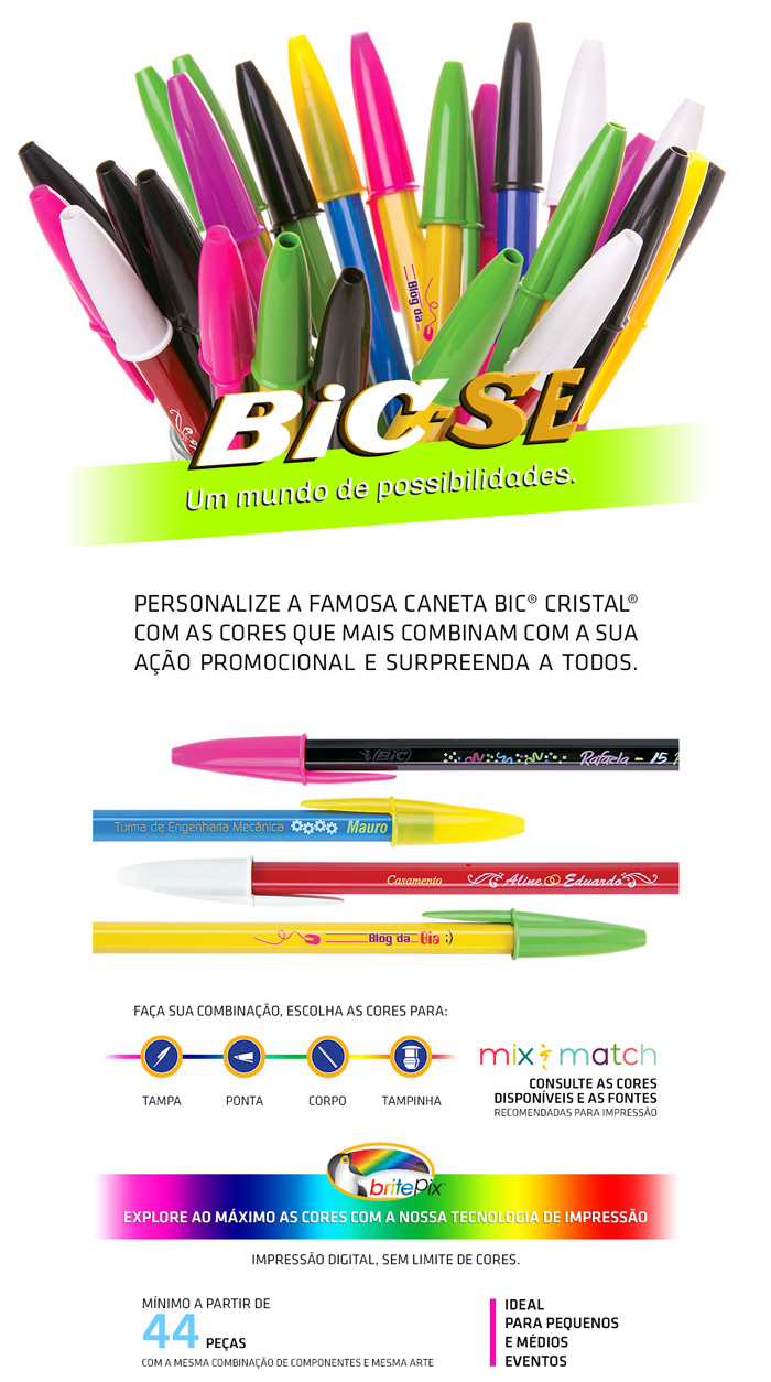 mais liberdade na escolha das cores e componentes de sua caneta BIC Cristal.