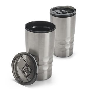 Copo de viagem Hassi AZ94676. Aço inox e PP. Com corpo duplo. Capacidade: 510 ml. Food grade. Fornecida em caixa. ø87 mm x 151 mm